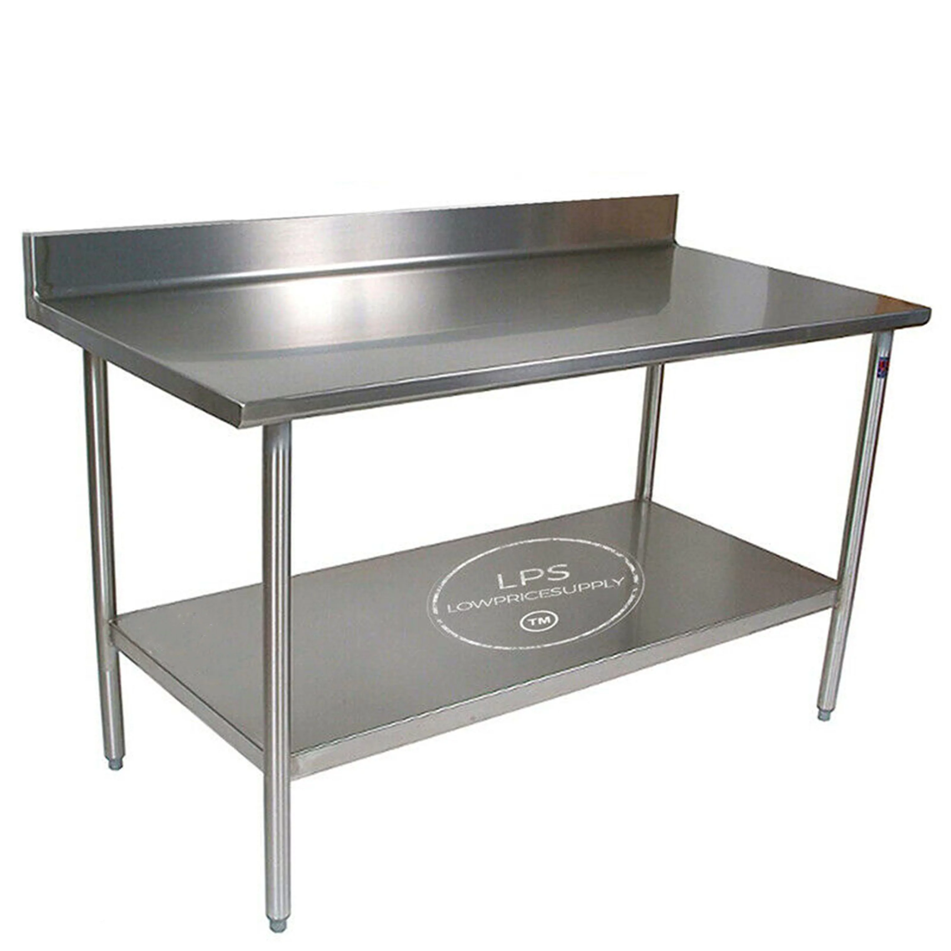 "30"" x 60"" 18-Gauge 304 Stainless Steel Commercial Work Table with 4"" Backsplash"
