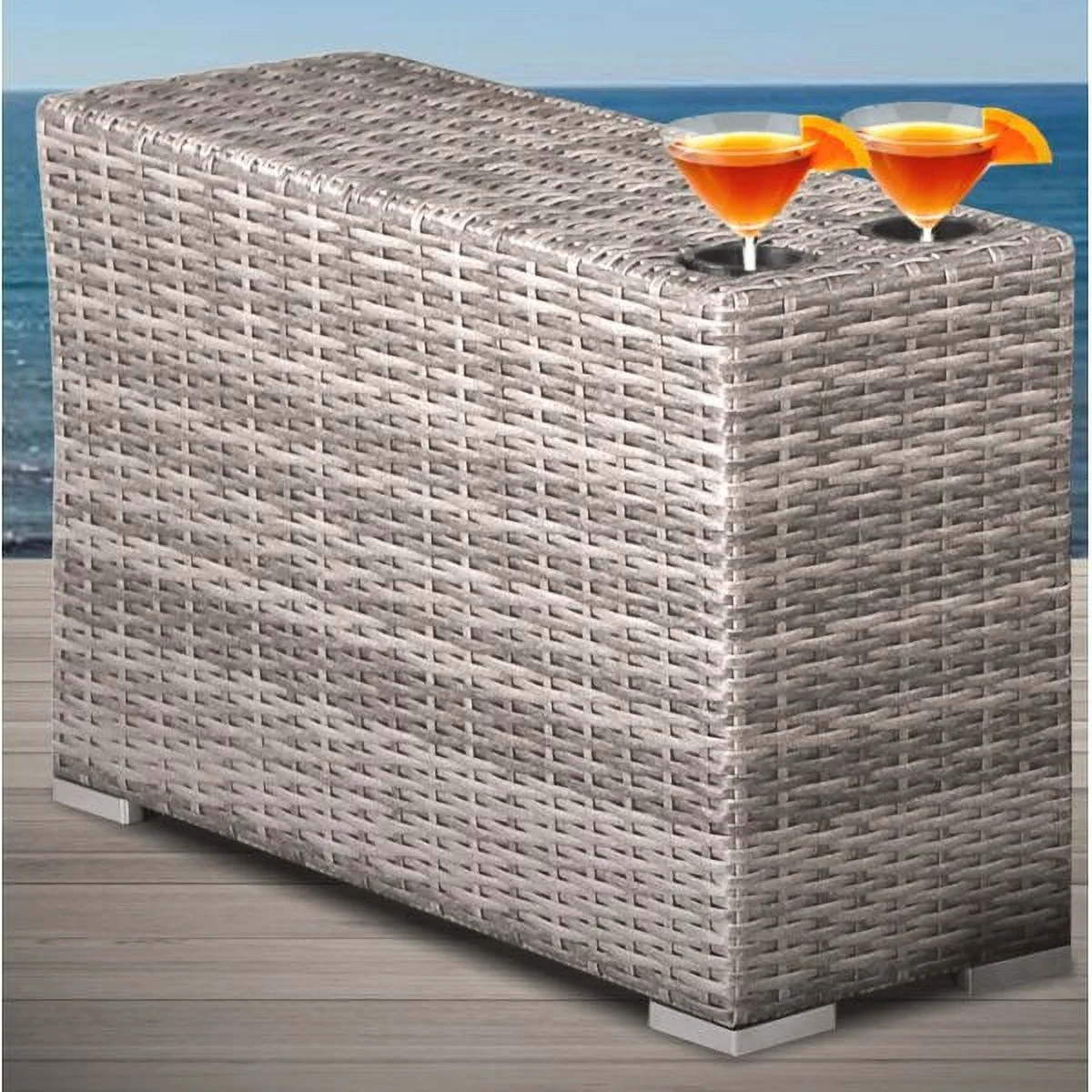 "Fully Assembled" Living Source International Wicker Side Table (Gray)